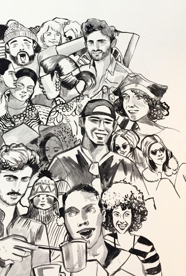 Yes, sneaky little mementos do make their way into our work from time to time… We did a painting last year for Facebook in Davos (below) which was world map made from people’s faces. We popped loads of our friends and family in there!