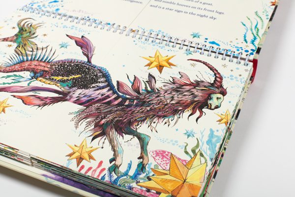 It was really fun but a lot of work. We particularly enjoyed having the chance to research and select the beasts and write the text. The drawings themselves were a joy to create and it really challenged us, as they were full, rich colour which was new for us. There were some challenges like working with a template to make sure all the beasts fitted together, but also the challenge to make the book work as a whole.
