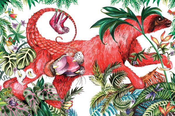 We would sketch out the beast using all the sections of animals that we’d selected. We then paint them using inks and watercolours and add black fineliner.