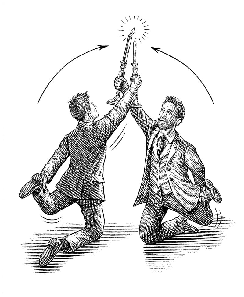 The object is for the participants to approach each other and then for one to light the other’s candle without either of them letting their left knee touch the ground.