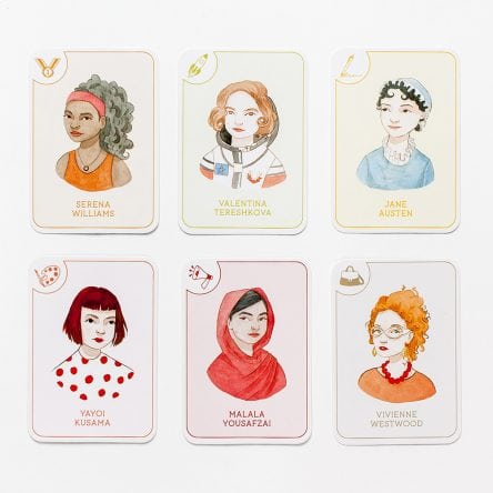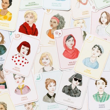 Collect illustrated cards illustrated by Laura Bernard of 44 of the most inspirational women of all time and place them into groups including aviation, sport, activism, art, science and fashion. See which of your friends knows the most about awesome women in this fun and informative game based on Happy Families.