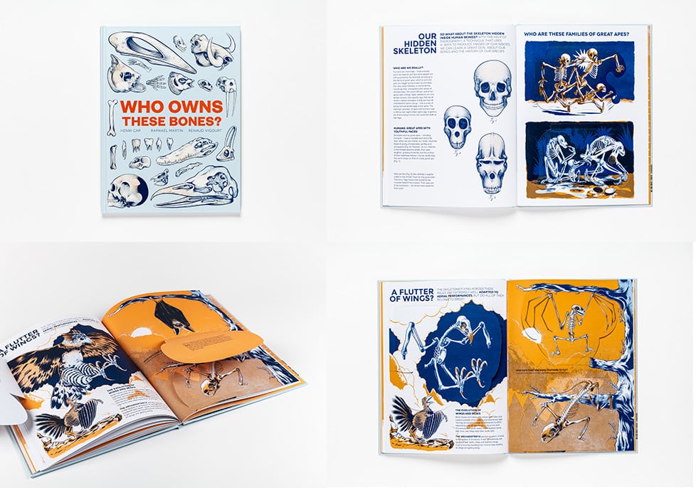 Who Owns These Bones? a book that takes the unusual perspective of showing the skeleton first – in great and impressive detail – with lift the flaps to reveal the animal the skeleton belongs to underneath. Enlightening, and full of amazing anatomy facts. Perfect for biology lessons.