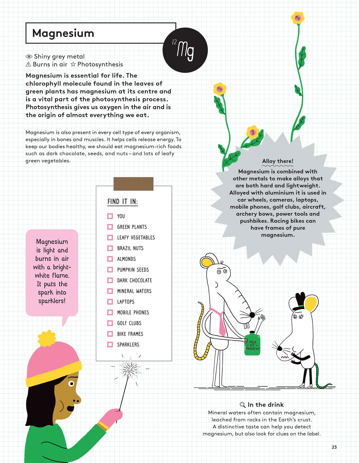 Magnesium is light and burns in air with a bright-white flame. It puts the spark into sparklers…