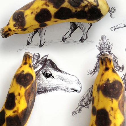 The material I use are the day to day ones, simple objects that I have easy access to food, nature, everything I see I use as an inspiration. I use a black pen or a pencil, sometimes crayons but always in a very simple way, with not too much detail because I believe the creatives ideas are what should be showed off the most.