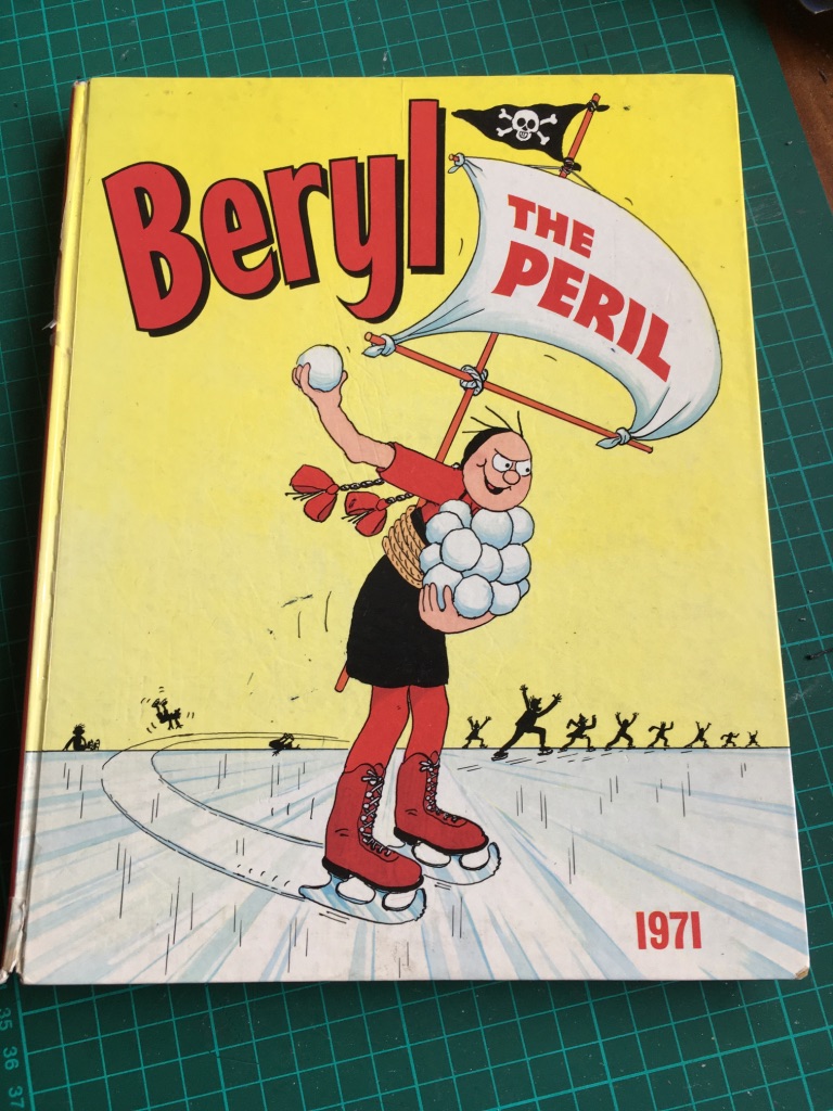 Well, to go back to my previous answer, it’s the 1971 Beryl the Peril Annual, drawn by a brilliant cartoonist called David Law. Beryl is like a female Dennis the Menace but gets into trouble usually by accident. I would love to live in her world and be her best friend. I used to spend hours re-reading the book, lying on top of my bed with my head sticking over the end, and the book on the floor below me.