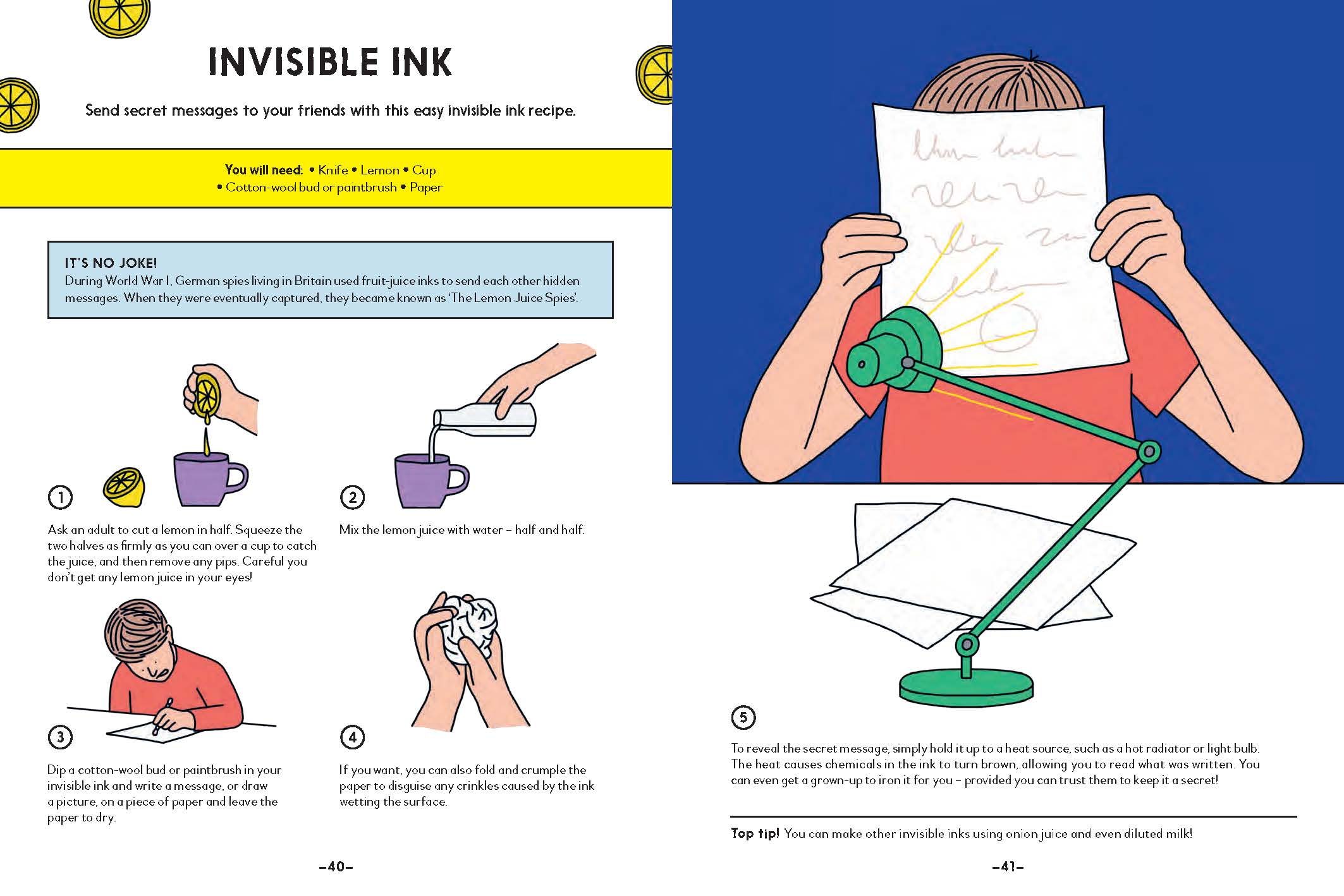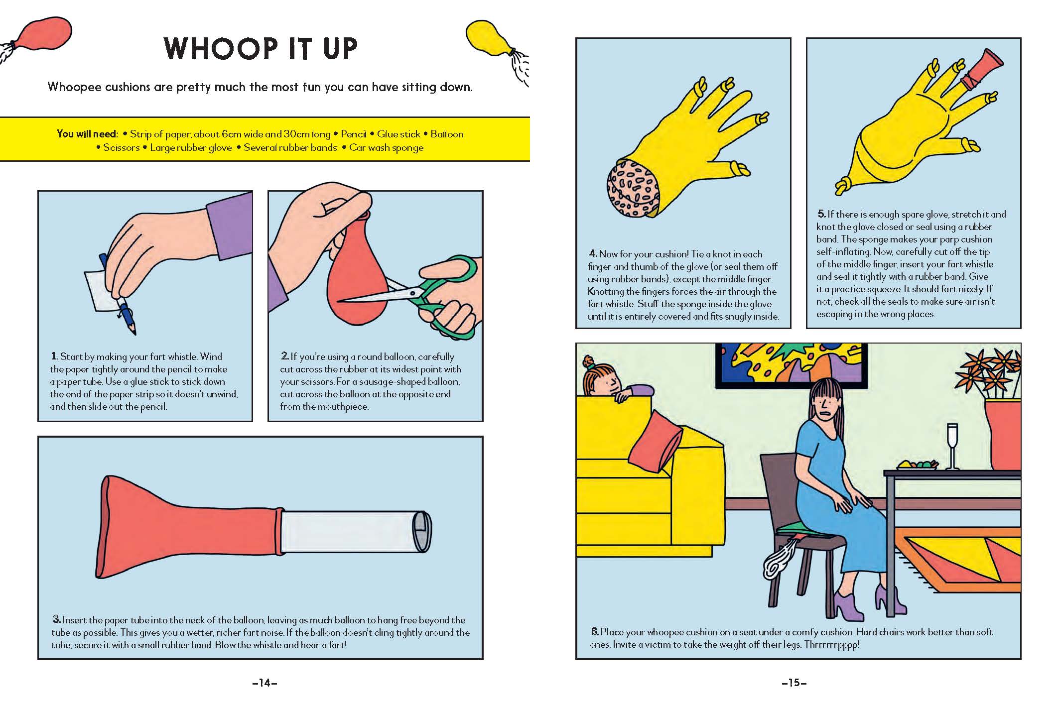 Well, farts are always funny! The book tells you how to make a homemade whoopee cushion AND a DIY fart whistle AND some fart putty. So that would be one way to keep people’s spirits up: more farting, fake or real. I’m just sorry that I couldn’t work out a recipe for homemade trick soap – soap that turns black when you start using it. That would have been brilliant now, given how we are all washing our hands more often. I once bought some trick soap from a joke shop when I was a kid, and my dad used it to wash his face. That was hilarious!