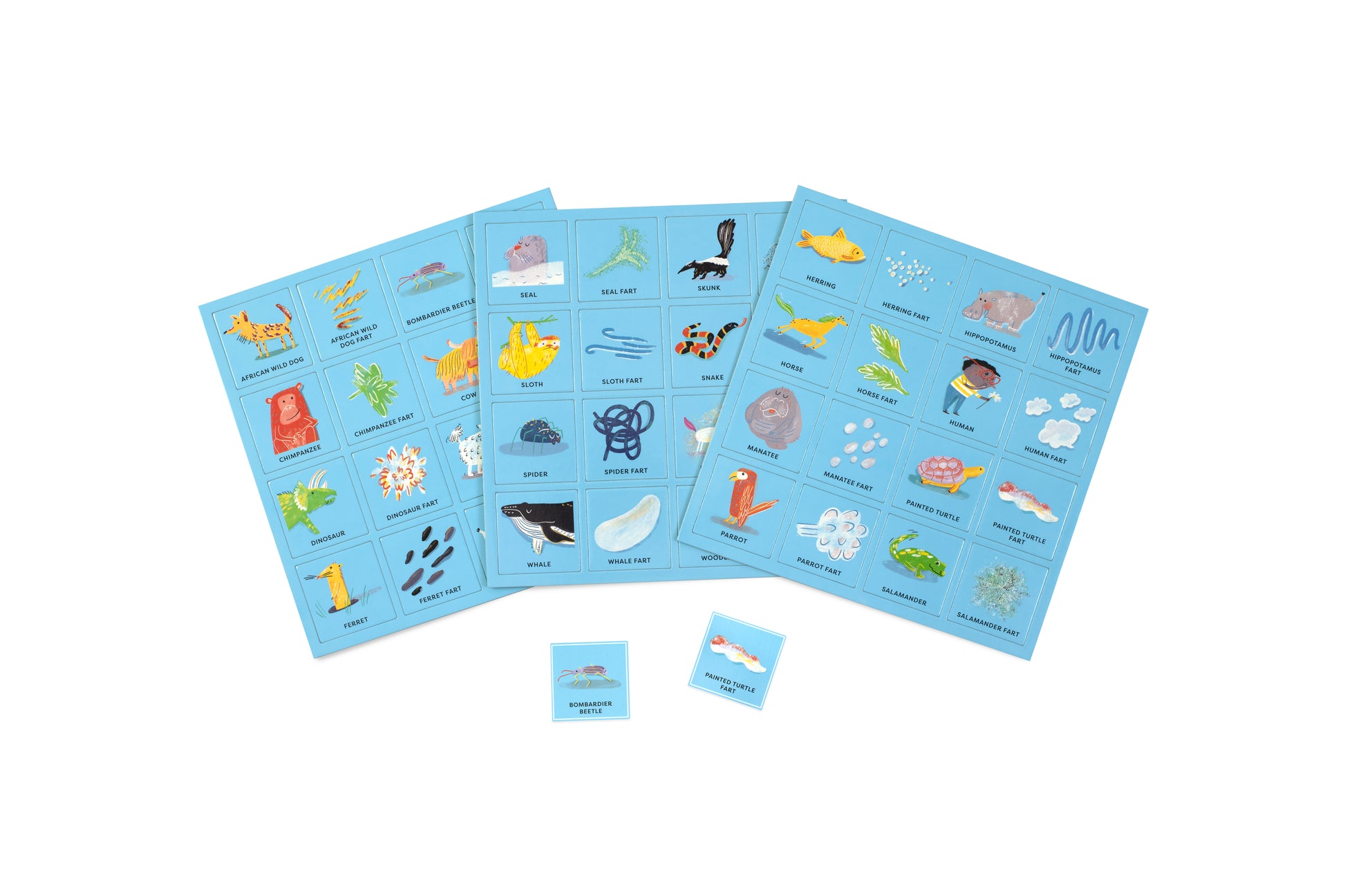 Explore the silly side of nature with 24 animals and their uniquely shaped, sized and coloured farts featured in this family bingo game. With hilarious illustrations, fascinating farty facts and quick to learn rules, Fart Bingo will have you giggling and guffawing in no time.
