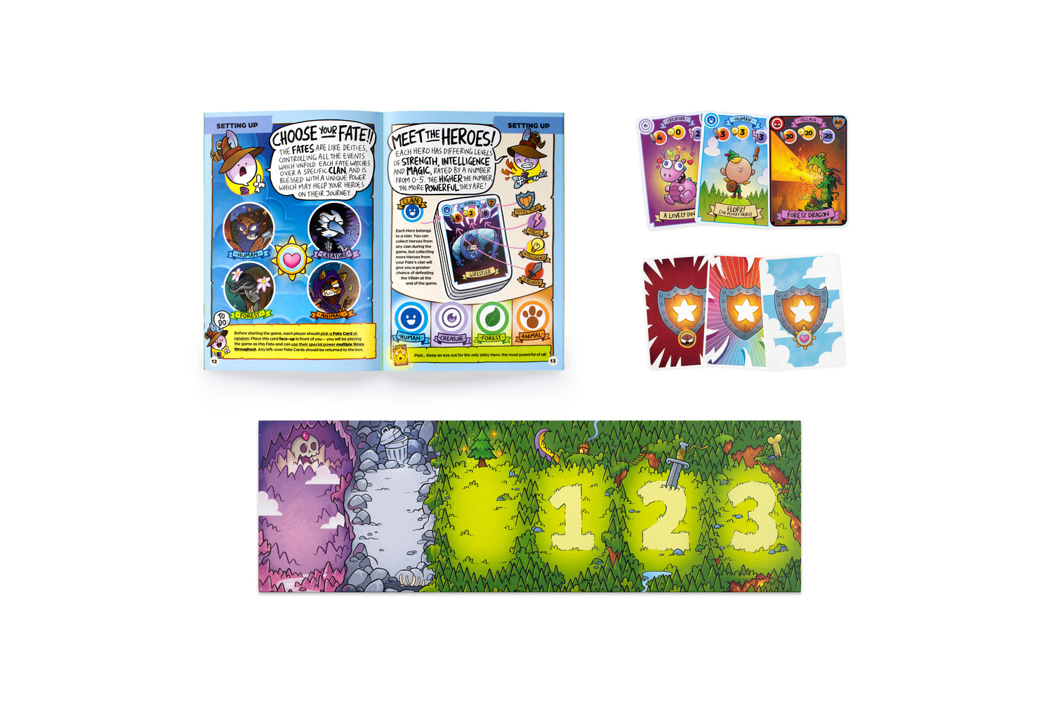Aimed at children aged 8-11 but fun for the whole family, the game consists of 90 cards in a gift box with gameboard and mini-comic setting out the backstory of the adventure through the Enchanted Forest.