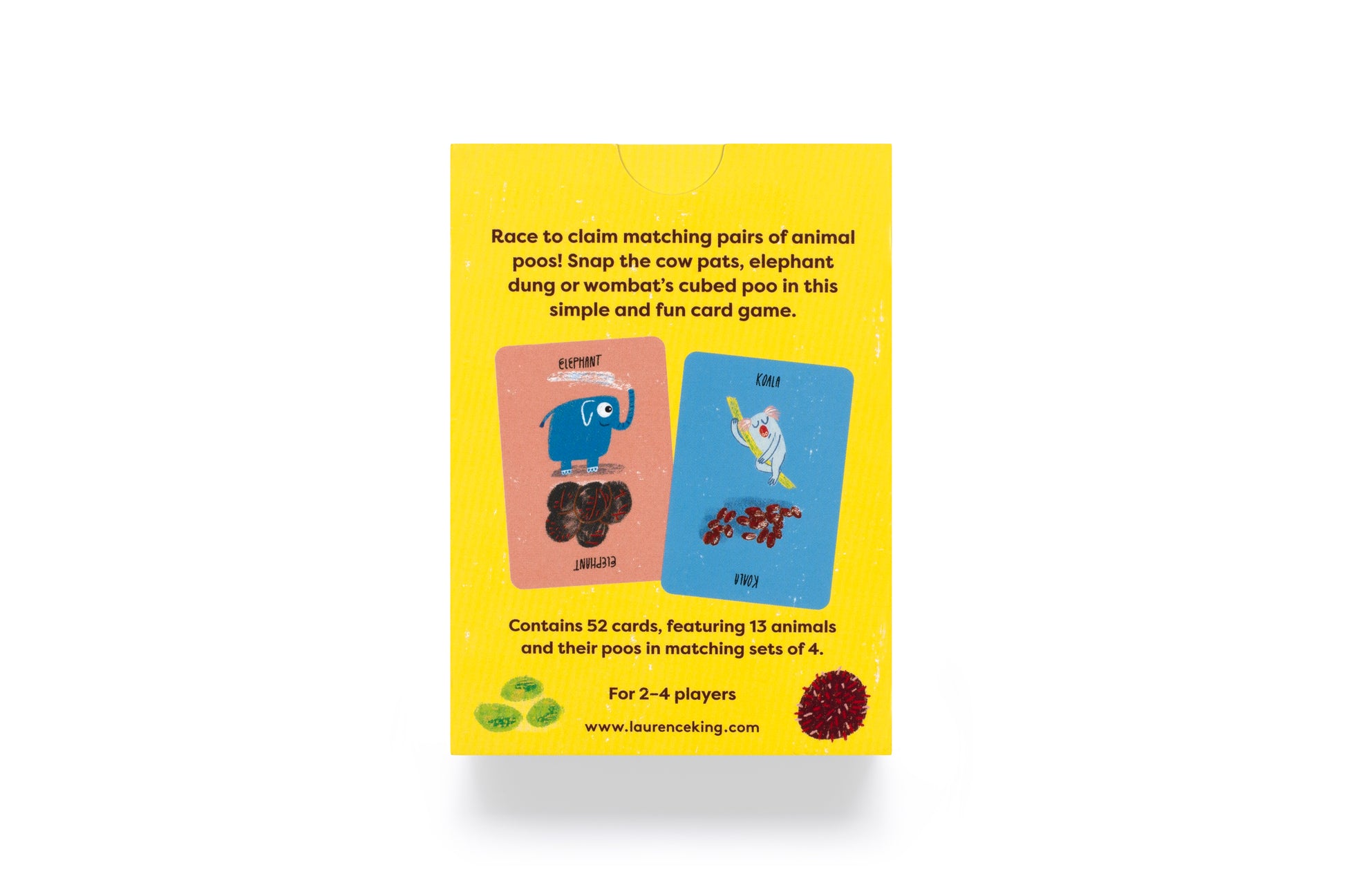 Quick reflexes and a sense of humour are key in this fast-paced card game, where you'll race against your opponents to claim pairs of matching animal poos by shouting "SNAP" as quickly and loudly as possible. Whether it's a steaming cow pat, a neat pile of moose nuggets, or a wombat's cubed poos, delight in Claudia Boldt's delightful and hilarious illustrations with every card turned over in this laugh-out-loud version of a family favourite.
