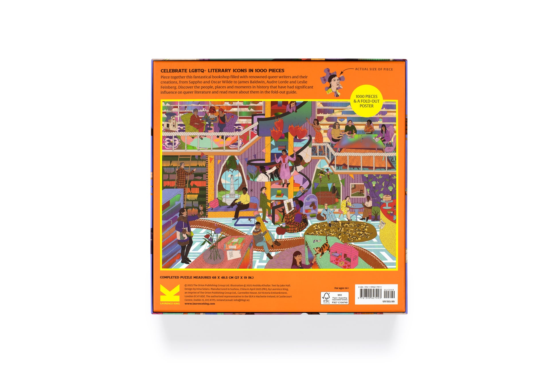 1000-PIECE PUZZLE celebrating LGBTQ+ literary icons, measuring 48.5 x 68 cm (19 x 27 in.) when completed.