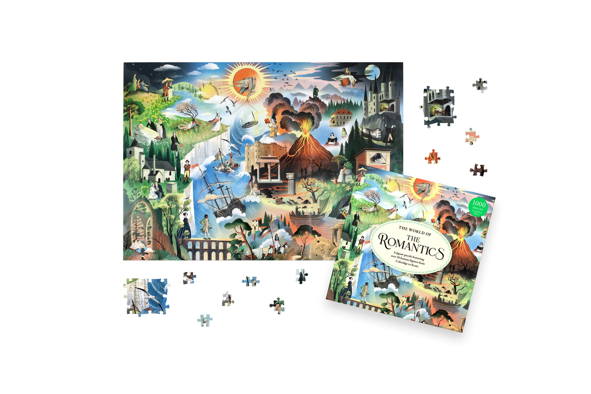 This intricately detailed jigsaw puzzle features famous poets, writers, artists, activists, musicians and scientists from the Romantic movement, including the Shelleys, Lord Byron, Keats, Coleridge, Wordsworth, Blake, Beethoven, Turner and more. Travel from the Lake District to the Mediterranean as you immerse yourself in the awesome power of nature and art inspired by the sublime.