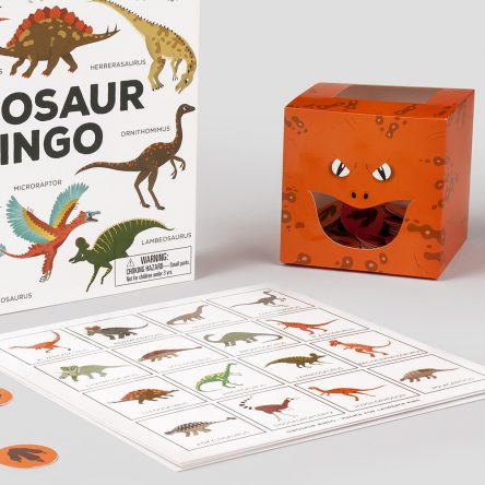 Dinosaur Bingo contains 48 chips and a cardboard dino head to store them in, a game board, eight double-sided bingo cards and Jurassic counters for you to mark up your card – it’s the perfect portable game for all dino-mad families this summer.