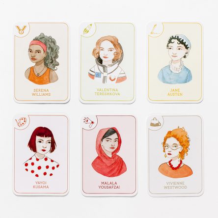 Collect illustrated cards illustrated by Laura Bernard of 44 of the most inspirational women of all time and place them into groups including aviation, sport, activism, art, science and fashion. See which of your friends knows the most about awesome women in this fun and informative game based on Happy Families.