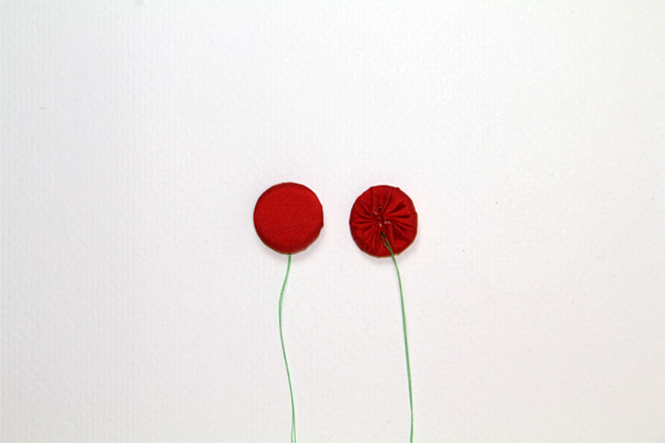 Gather the basting thread, making sure the batting and ring are centered in the circle.