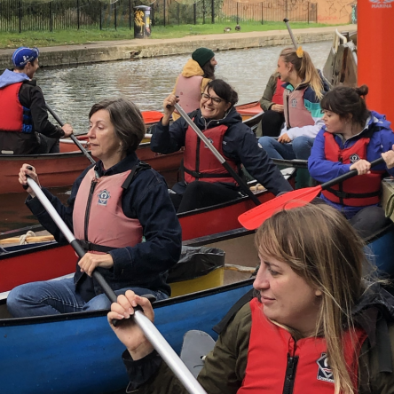 A few hours and several cans, bottles, plastic cups, a bin lid, a tap, a shopping trolley and a seeming endless amount of plastic packaging later; we rowed back to deliver our booty to a waiting rubbish collection boat from the Canal & Rivers Trust.